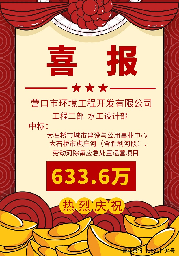 營口市環境工程開發有限公司中標大石橋市城市建設與公用事業中心大石橋市虎莊河(含勝利河段)、勞動河除氟應急處置運勞項目