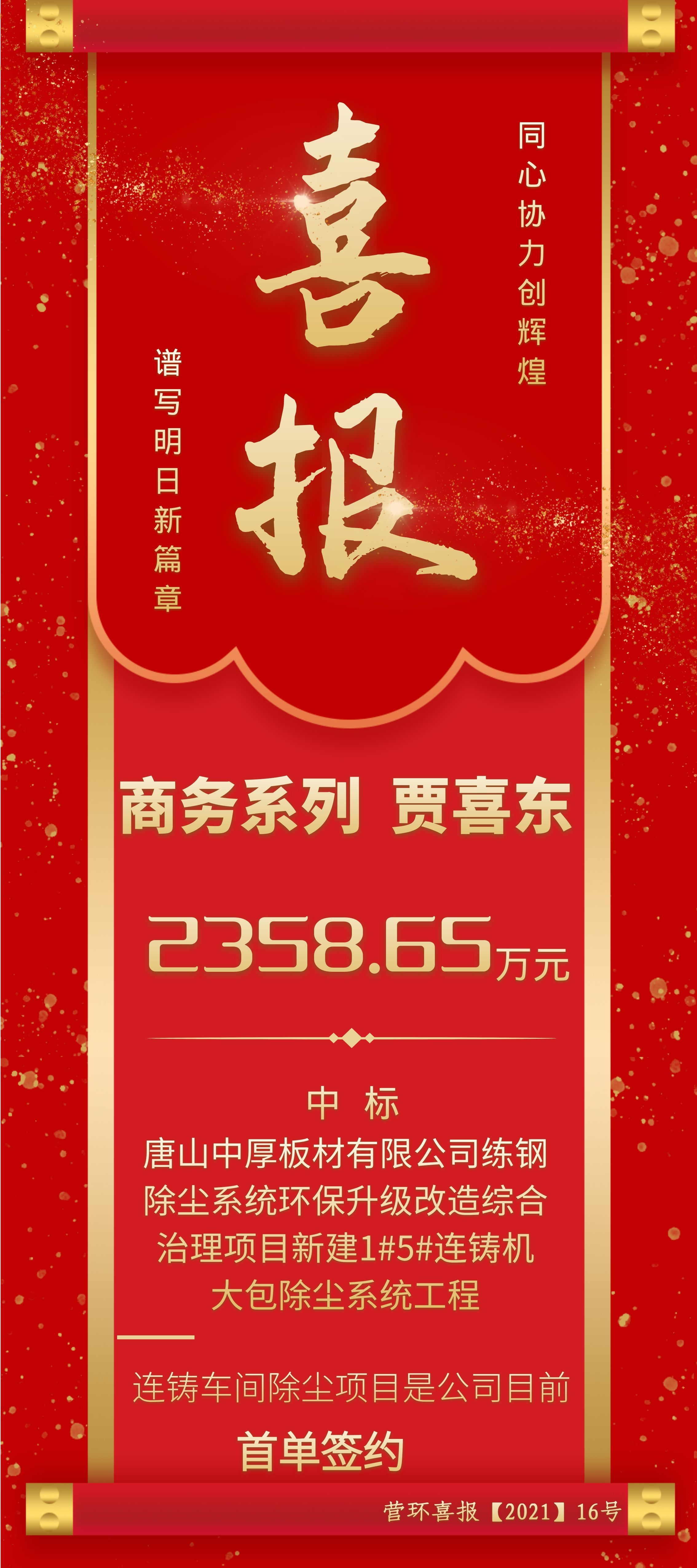 營口市環境工程開發有限公司中標唐山中厚板材有限公司煉鋼除塵系列環保升級改造綜合治理項目新建1#5#連鑄機大包除塵系統工程